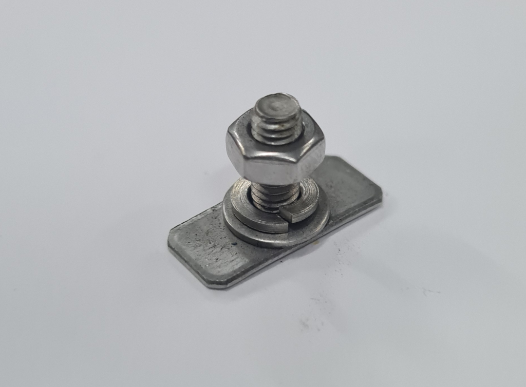 Zierleisten Halter aus V2A mit unterlegscheibe , Sprengring und Mutter M4